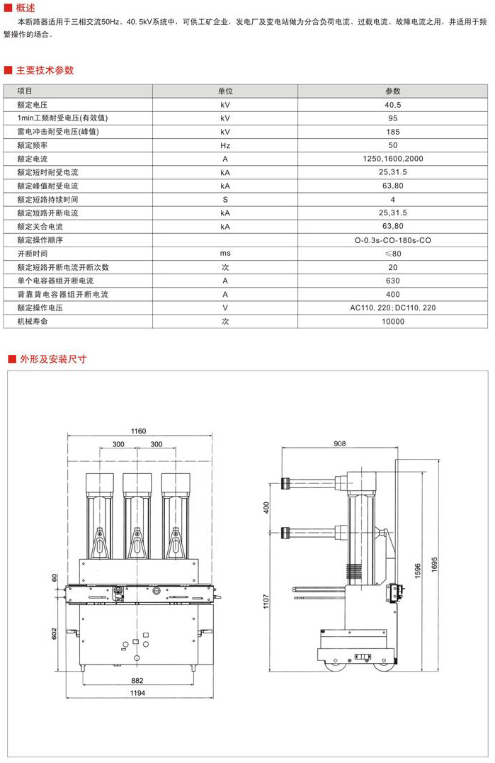 ZN85-40.5戶內高壓真空斷路器